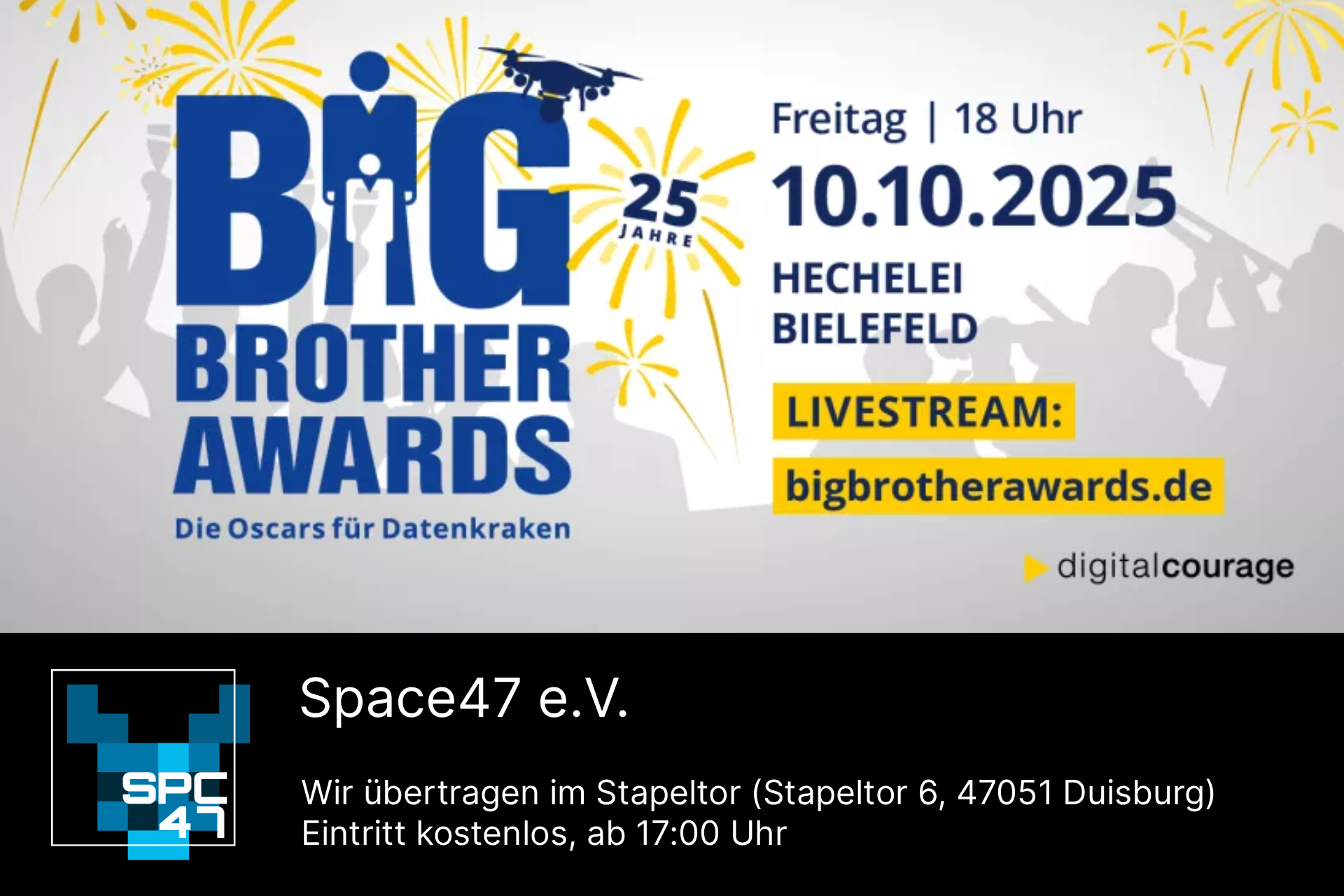 Die Verleihung der BigBrotherAwards 2025 findet statt am 10. Oktober, zwischen 18 und 20 Uhr.