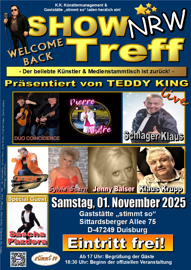 Am Samstag, den 01. November feiern wir die Neuauflage des "ShowTreff-NRW "