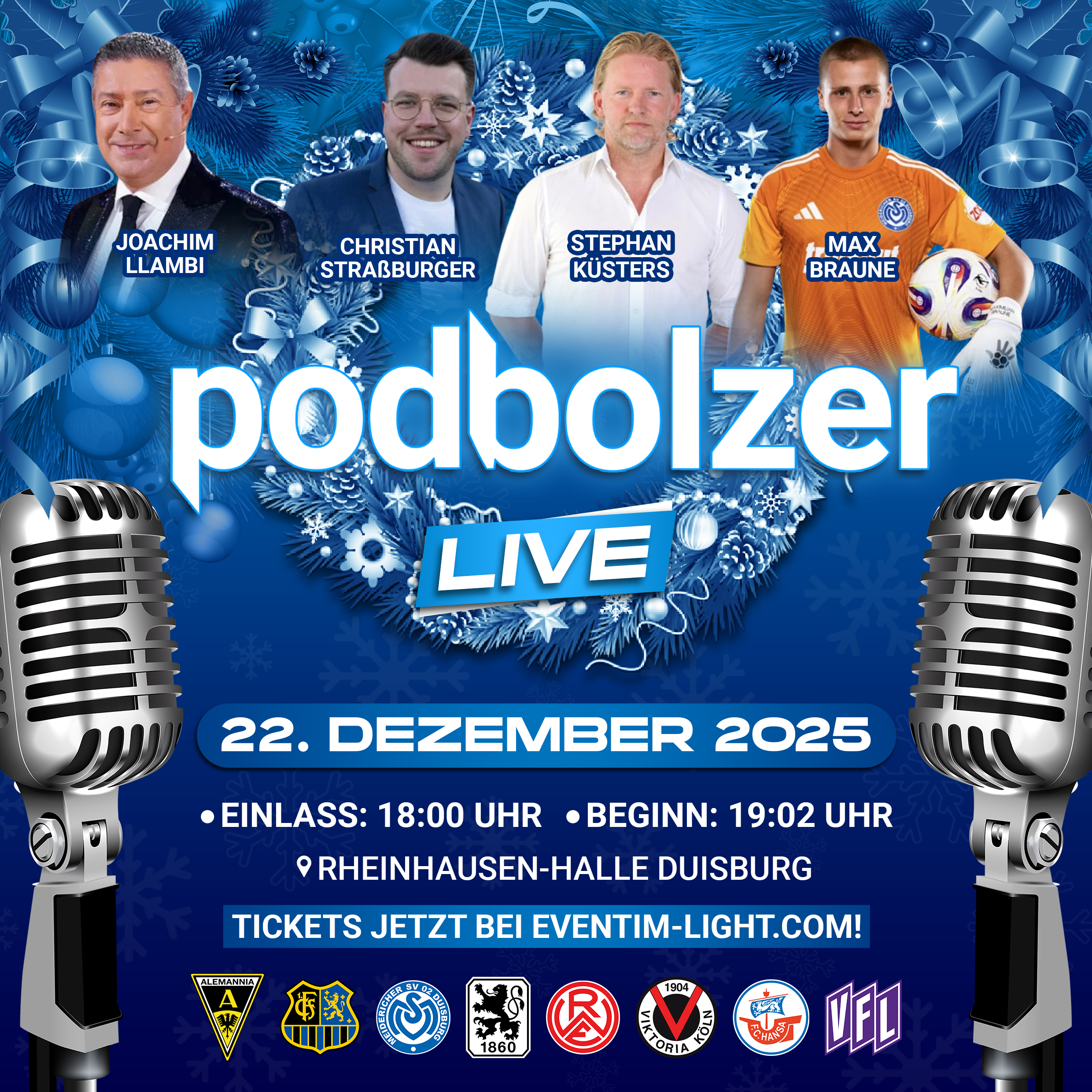 PodBolzer presents - "Das große Weihnachts-Spezial (Live-Podcast)" mit Joachim Llambi (RTL), Christian Straßburger (Magenta & Sky), Stephan Küsters (Viktoria Köln) und Max Braune (MSV Duisburg)