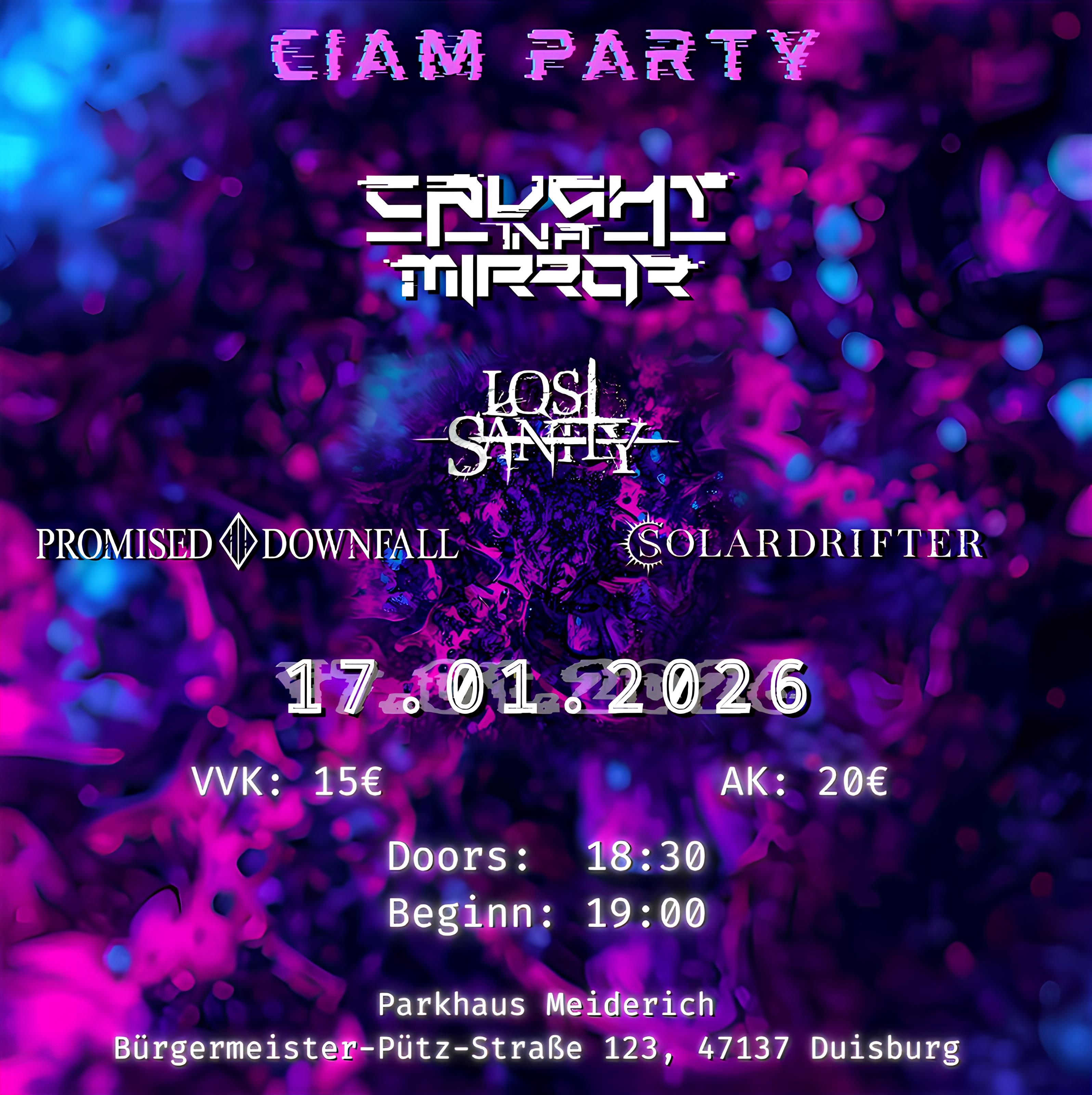 Seit 2016 sprengen CAUGHT IN A MIRROR die Grenzen zwischen Metalcore und Rave – mit ihrem unverwechselbaren Neoncore-Sound. Was euch erwartet? Keine einfache Show, sondern ein audiovisuelles Spektakel von kosmischem Ausmaß: Konfettiregen, Licht- und Nebelgewitter, Bass bis in die Magengrube und eine Prise Humor, die selbst den härtesten Metalhead zum Grinsen bringt. Wer CIAM kennt, weiß: Hier bleibt kein Shirt trocken und kein Publikum still!