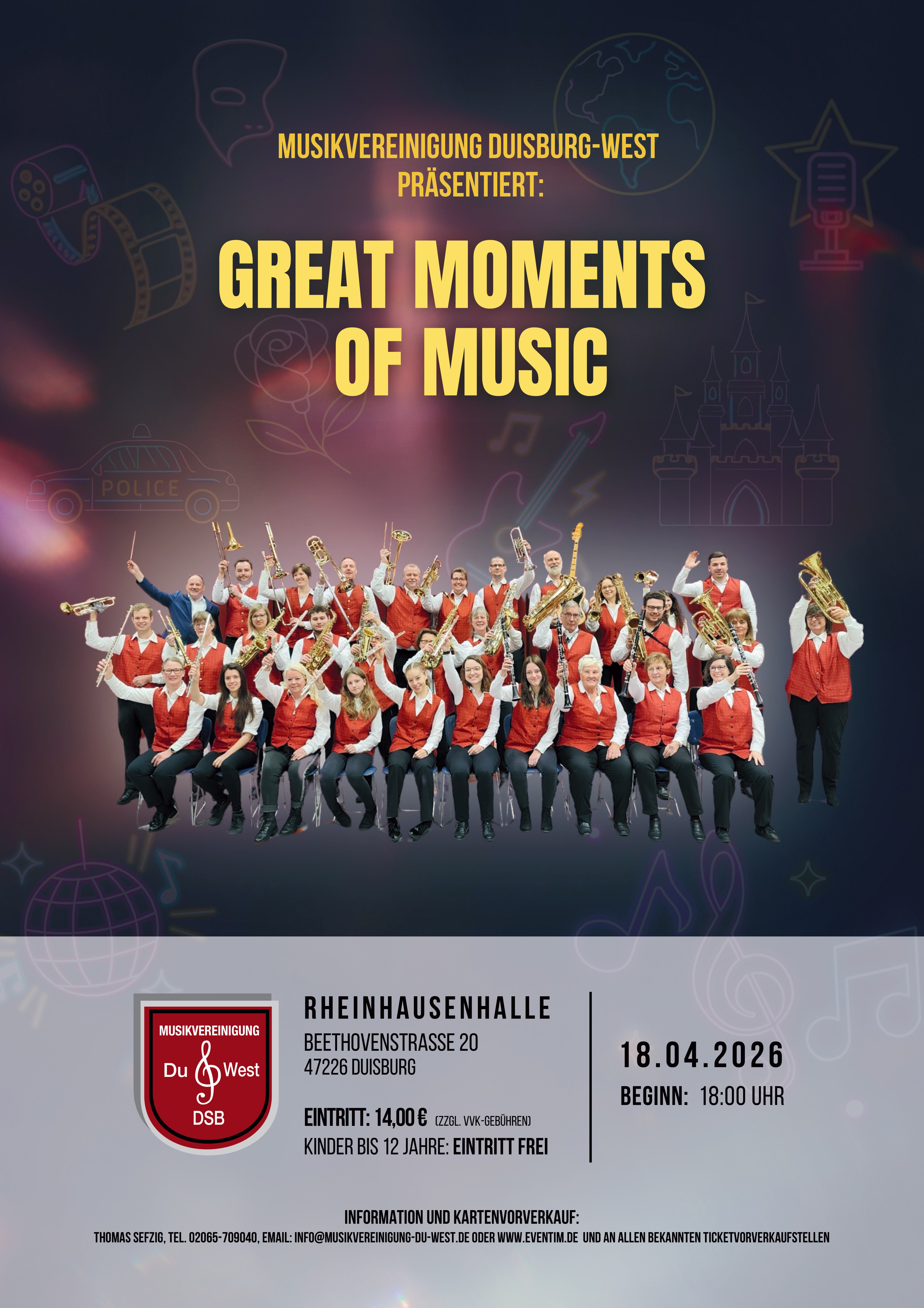 Die Musikvereinigung Duisburg-West lädt herzlich zu einem besonderen Konzertabend ein. Am 18. April 2026 präsentiert das moderne Blasorchester in der Rheinhausenhalle ein Programm voller packender Klänge und berührender Momente.