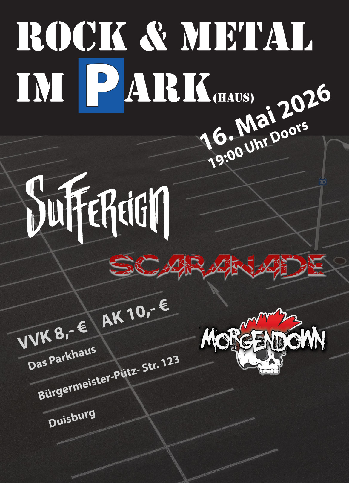 Gegründet 2021 in Oberhausen, zelebrieren SCARANDE klassischen Heavy Metal mit starkem 80er-Einschlag – kombiniert mit modernen Elementen. Druckvolle Gitarren, eingängige Refrains und eine markante Powerstimme sorgen für Songs, die direkt ins Ohr gehen und zum Mitnicken, Mitsingen und Abfeiern einladen. Mit ihrem Debütalbum „Kind of Hell“ (VÖ: 13.09.2025) präsentieren sie eine explosive Mischung aus Tradition und zeitgemäßer Härte – bereit, die Bühne im Parkhaus zu erobern.
